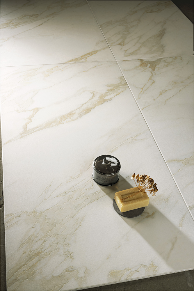 De keramische tegel Zesty Warm White is verkrijgbaar in 60×60, 60×120 A+B Bookmatch en 120×120 cm.